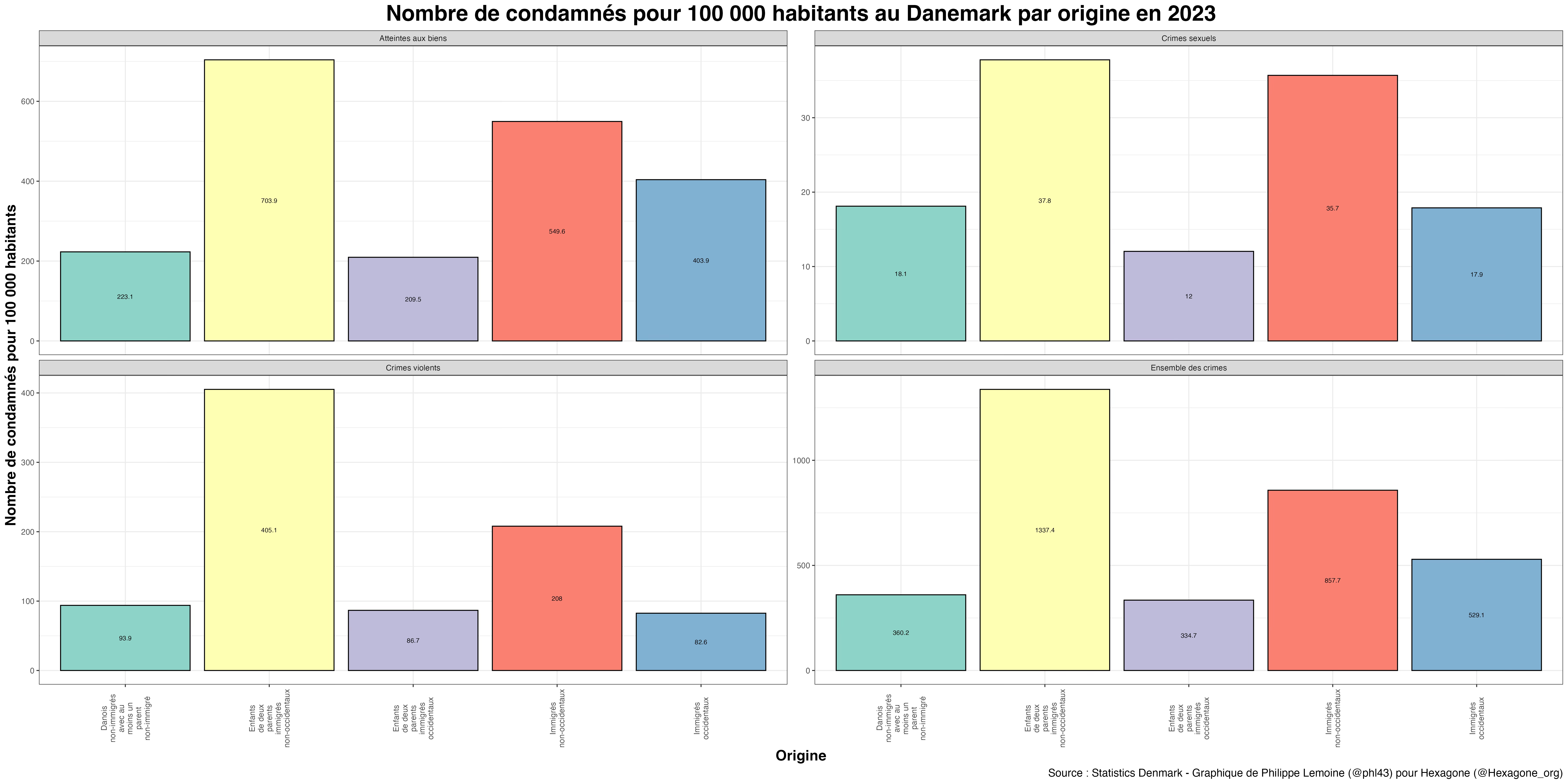 Par exemple, au Danemark, les immigrés non-occidentaux et leurs enfants sont aussi massivement surreprésentés dans les chiffres sur les condamnés :